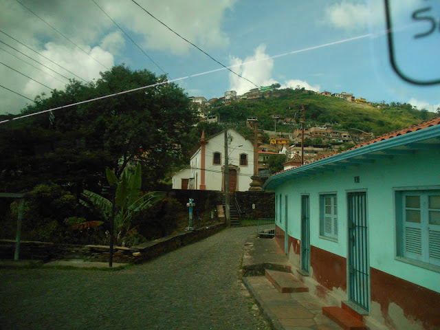 Às 7:43h um guia dessa mesma Uai Brazil Tours nos chamou e entramos num micro-ônibus bem apertado [depois de conversar com o pessoal de lá entendi que a Ouro Preto Turismo também vendia passeios para eles, que realizavam o turismo receptivo no local].