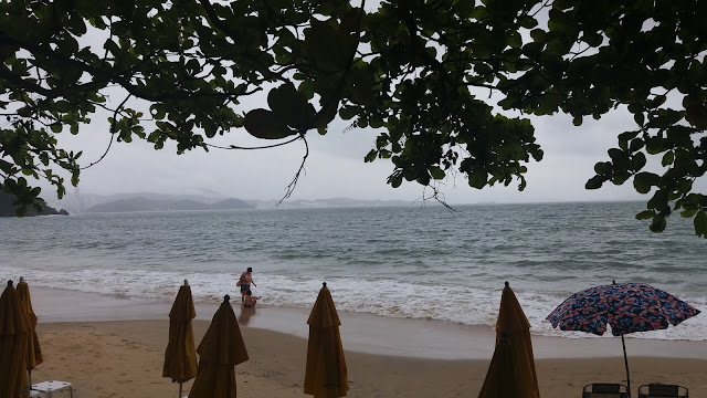 Essa praia, que em seu dia-a-dia comum com certeza costuma ficar lotada de gente, dessa vez estava praticamente deserta, mas os comerciantes daqui sabem que isso é comum e que isso faz parte da natureza, afinal, não chover também causaria mal indiretamente para eles através do aumento dos preços das frutas e outras coisas relacionadas à agricultura.