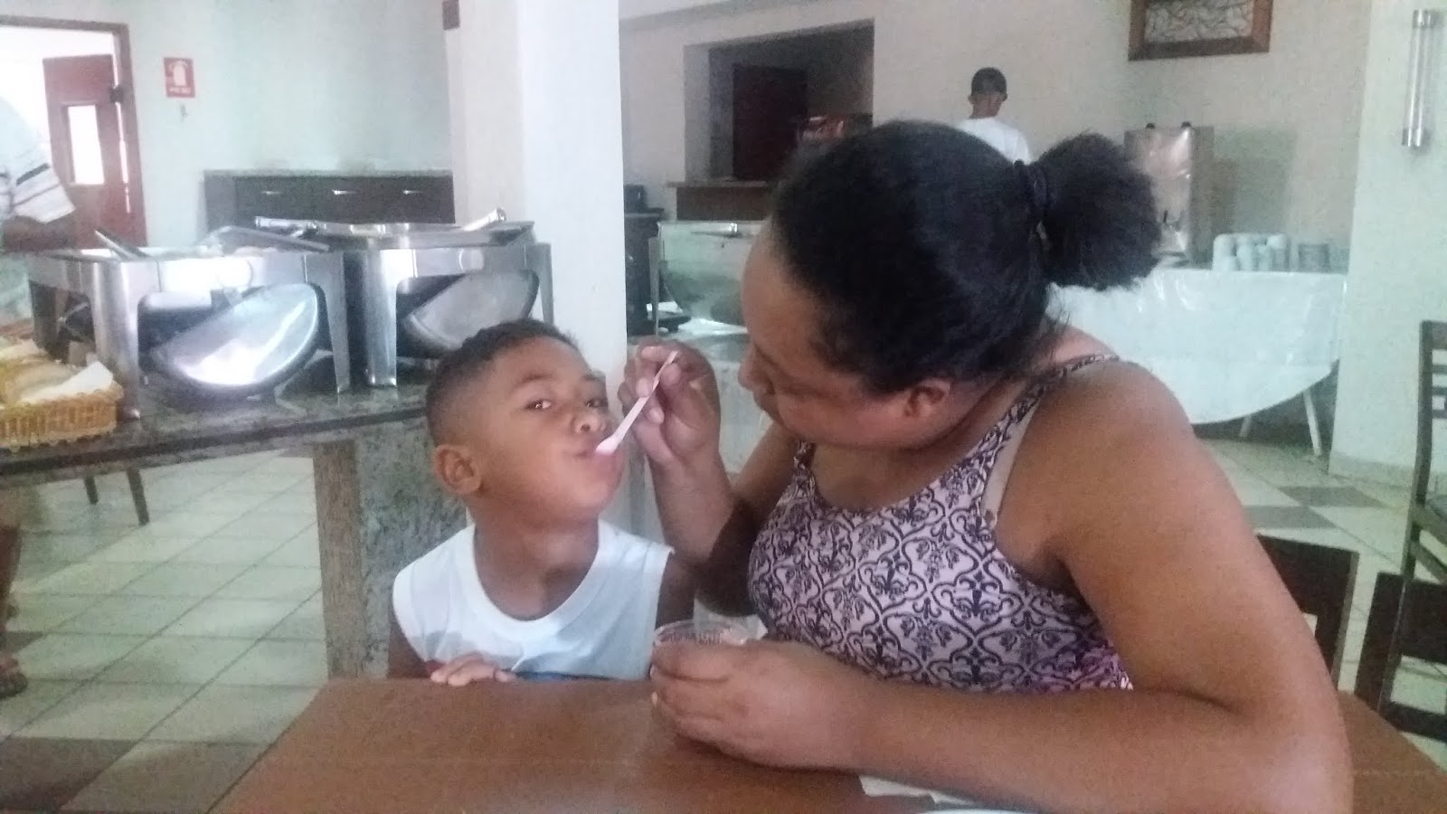 Acordamos às 8:00h e nos arrumamos bastante, sempre tomando cuidado com o que estávamos levando e sem esquecer o protetor solar, já que visitaríamos o Hot Park nesse dia. Às 8:40h descemos, chamamos a Dona Graça em seu quarto e seguimos pro refeitório do hotel.